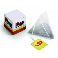 Artikel-Nr: 42813701 TütchenTee in viereckigem Karton in : grüne Minze, Zitrone Tee oder Rooibos Tee, all-over Euroskala bedruckte Karton .
