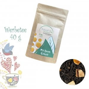 Artikel-Nr: HLSN40105487Tee mit Logo aus der YuboFiT® Tee Manufaktur. Die feine, ausgewogene Orangennote findet im Schwarztee ihren kräftigen Partner