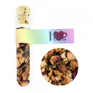 Zutaten: Apfelstücke, weißer Hibiskus, süße Brombeerblätter, natürliches Aroma, Rosenblütenblätter