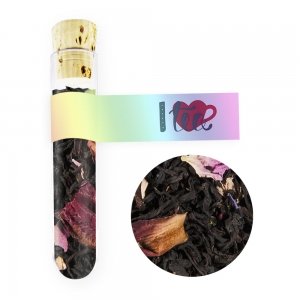 Zutaten: Schwarzer Tee (94 %), Rosenblüten, Aromen, Malvenblüten, Pfingstrosenblüten