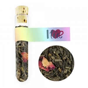 Zutaten: China Sencha Grüntee (92 %), Aromen, Ananaswürfel (Ananas, Zucker), Sonnenblumenblüten, Rosenblütenblätter