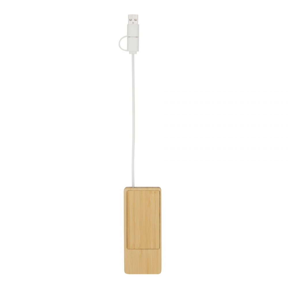 Artikel-Nr: INP56-1107378Smartphone-Halter EXCHANGE, mit USB Hub: im Bambus-Gehäuse, 2 Port USB Typ A und 2 Port USB Typ C, Kabellänge ca. 18,5 cm, kombinierter USB Typ A / Typ C Eingangsstecker, in Box