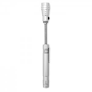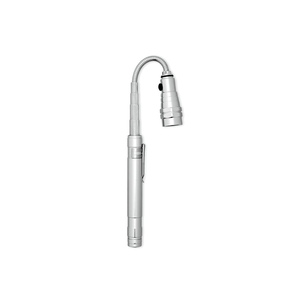 Artikel-Nr: OCBMO8621-14Teleskop Taschenlampe mit 3 LED Leuchten. Der obere Teil der Lampe ist flexibel und mit einem Magneten ausgestattet. Seitlicher Clip. Maximale Länge ausgezogen 57 cm. Inklusive 4 x LR44 Batterien.
