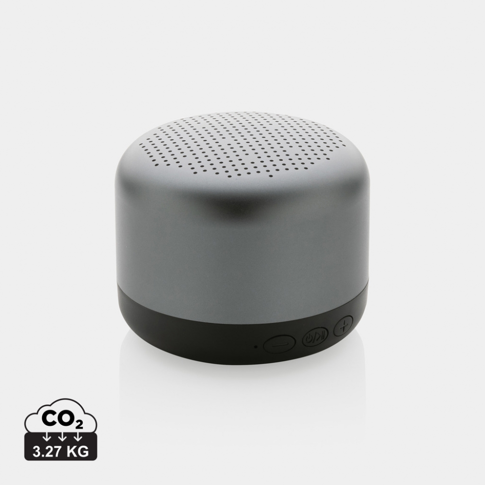 Artikel-Nr: XND329872Kabelloser 5W-Lautsprecher aus RCS (Recycled Claim Standard) zertifiziert recyceltem Aluminium und ABS. Gesamter Recyclinganteil: 35% basierend auf dem Gesamtgewicht des Artikels. Die RCS-Zertifizierung gewährleistet eine vollständig zertifizierte Lieferkette der recycelten Materialien. Aluminium verliert seine Eigenschaften im Recyclingprozess nicht und kann daher endlos recycelt werden. Inklusive recyceltem Type-C-Ladekabel aus RCS-zertifiziert recyceltem Aluminium, TPE und PET. Verpackt in FSC®-Mix-Verpackung. Der 600mAh-Akku ermöglicht eine Spielzeit von bis zu 4 Stunden und kann in 2 Stunden vollständig aufgeladen werden. Mit BT 5.0 für eine stabile Verbindung bis zu 10 Meter.