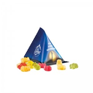 Artikel-Nr: PUC1027.00061Trolli Fruchtgummi im Tetraeder aus weißer Folie, individuell bedruckt. Inhalt: Trolli Fruchtgummi Bärchen in Premium Qualität mit 10 % Fruchtsaftanteil, bunt gemischt, 15 g