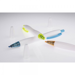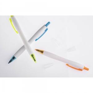 Artikel-Nr: ARD19675-07SNAP ist eine neue Art von Textmarker in Form eines automatischen Stifts. Der Textmarker wird durch Drücken des Knopfes auf der Oberseite ein- und ausgeschaltet. Der Highlighter ist zusätzlich durch eine Kappe vor dem Austrocknen geschützt. Gehäuse aus weißem Kunststoff mit Clip und Spitzen in der Farbe des Textmarkers.