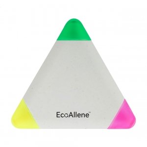 Artikel-Nr: AND808085Dreieckiger Textmarker mit 3 Farben aus recyceltem EcoAllene®-Kunststoff. EcoAllene® ist ein neues und innovatives Material, welches aus dem Recycling von Getränkekartons gewonnen wird.