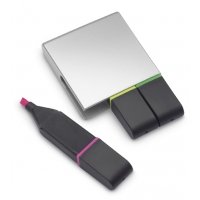 Ein Markierset für Office und Reise, das höchsten Ansprüchen genügen kann. Markiert in Grün, Gelb und Pink. Kunststoff, schwarz/silber, Geschenkverpackung Maße: 99 x 61 x 14 mm