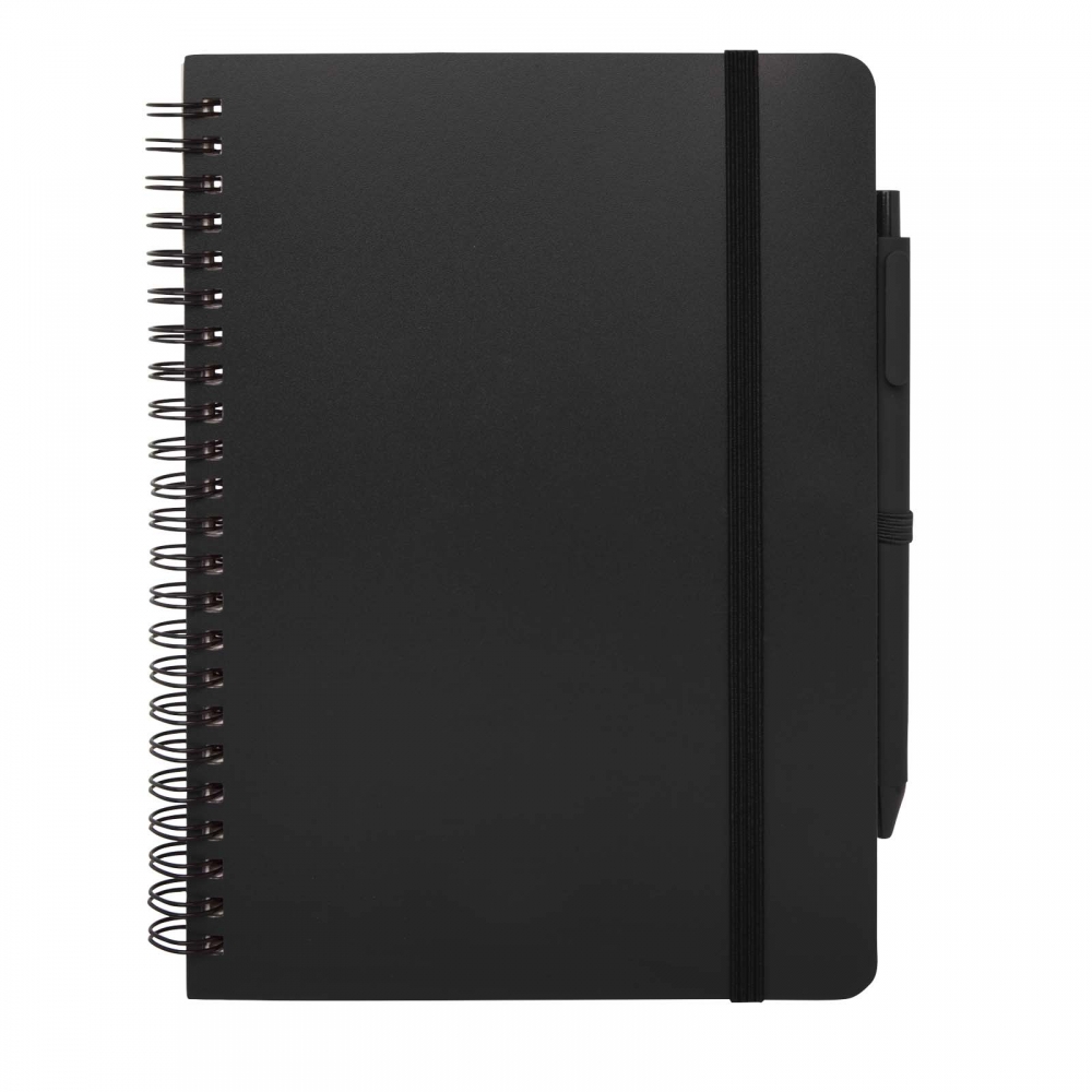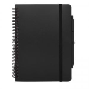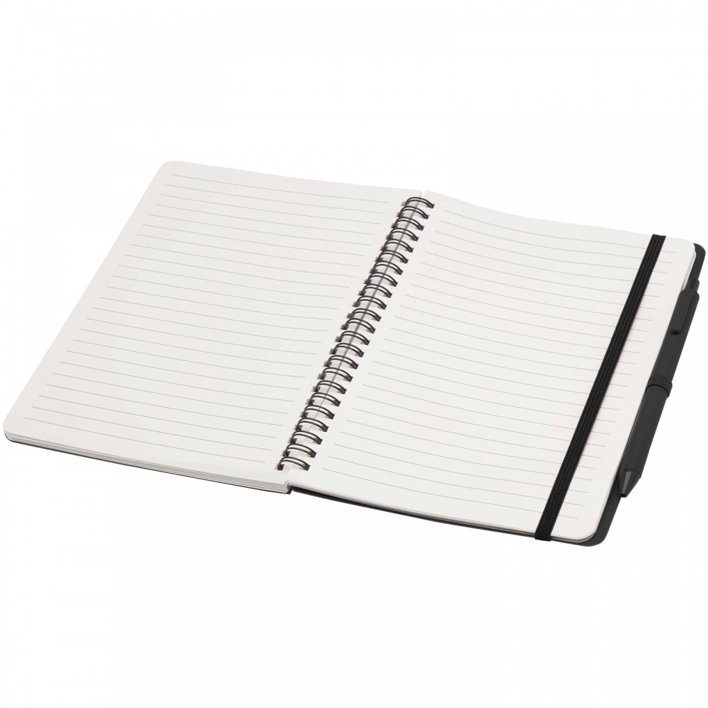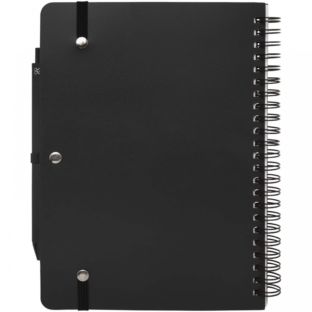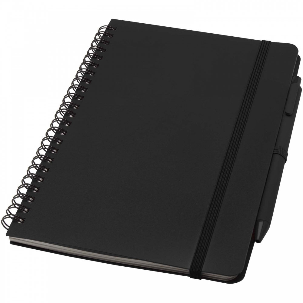 Artikel-Nr: CPO10790190Das Thalaasa A5 Hardcover Notizbuch besteht aus recyceltem ozeangebundenem Kunststoff und umfasst 80 Blatt, liniert, aus cremefarbenem 70 g / m² Papier. Das Notizbuch hat abgerundete Ecken. Es ist mit einem elastischen Verschluss und einer Stiftschlaufe ausgestattet. Der Kugelschreiber mit schwarzer Tinte ist ebenfalls aus recyceltem, ozeangebundenem Kunststoff hergestellt. Schreiblänge: 1000 Meter. Schreibspitze: 1 mm.