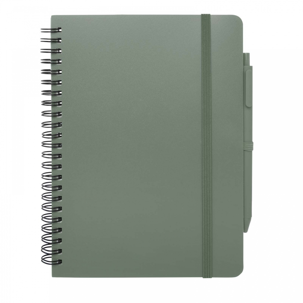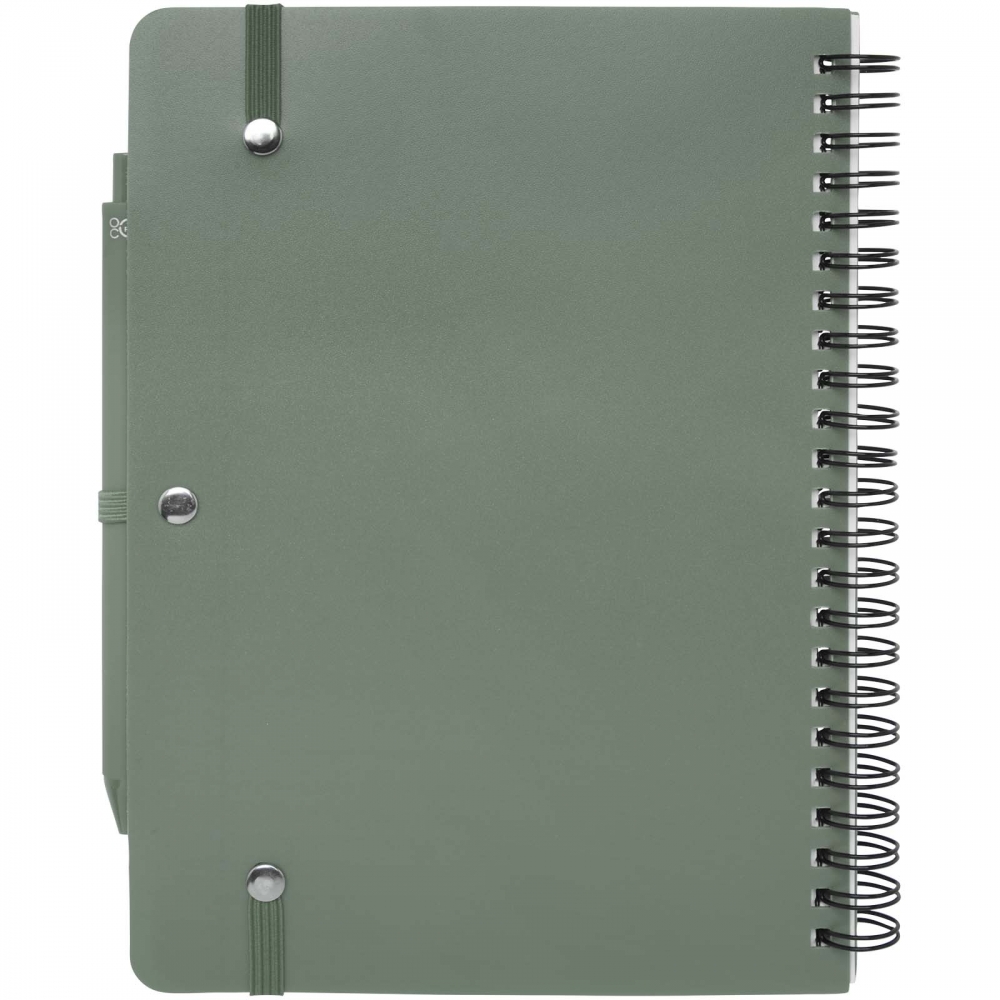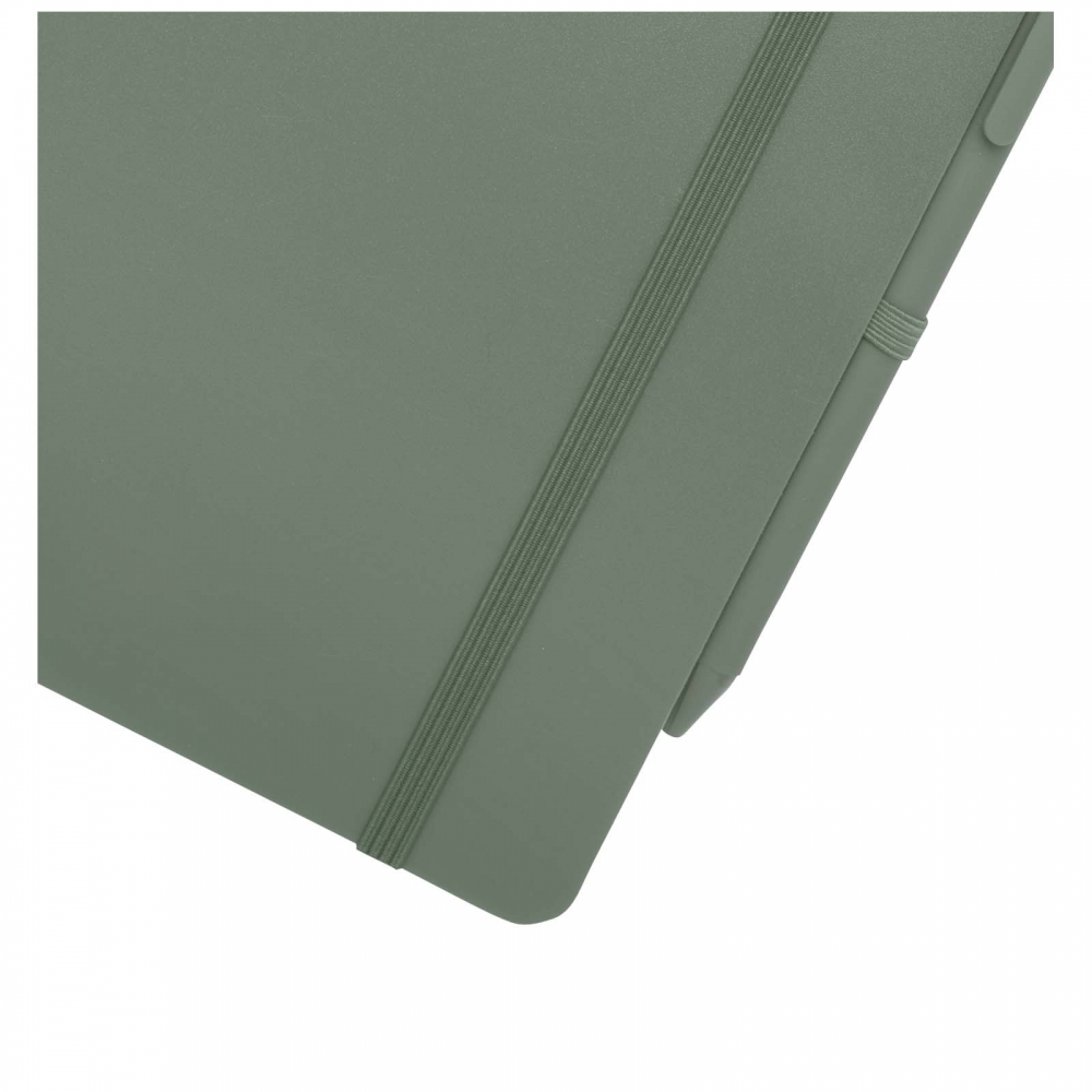 Artikel-Nr: CPO10790162Das Thalaasa A5 Hardcover Notizbuch besteht aus recyceltem ozeangebundenem Kunststoff und umfasst 80 Blatt, liniert, aus cremefarbenem 70 g / m² Papier. Das Notizbuch hat abgerundete Ecken. Es ist mit einem elastischen Verschluss und einer Stiftschlaufe ausgestattet. Der Kugelschreiber mit schwarzer Tinte ist ebenfalls aus recyceltem, ozeangebundenem Kunststoff hergestellt. Schreiblänge: 1000 Meter. Schreibspitze: 1 mm.