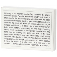 Artikel-Nr: 375102543Der Heimatforscher Sepp Graberer fand auf der Krautinsel im Chiemsee, seinen Forschungsergebnissen nach, das ehemalige Paradies, ein zerbrochenes Weinglas. Sind Adam und Eva nicht vom Apfel, sondern vom Wein verführt worden? Sieben Teile. Achtung! Nicht geeignet für Kinder unter 36 Monaten.
