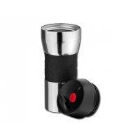 Thermobecher (380 ml) aus Edelstahl, Kunststoff und Gummi.