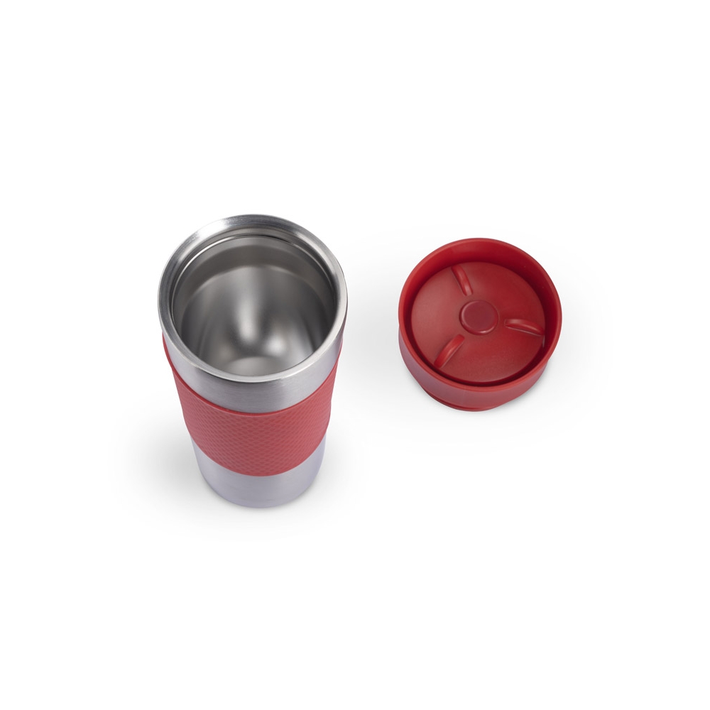 Artikel-Nr: ARD16044-04Der Thermobecher RONDE ist ein praktisches, praktisches und funktionelles Gadget. Das Gummiband am Becher sorgt für einen sicheren und bequemen Halt. Es verfügt über einen Verschluss mit Klicksystem, der für Dichtigkeit und Trinkkomfort von allen Seiten sorgt. Becher aus Edelstahl. Gummiband in der Farbe des Verschlusses.
