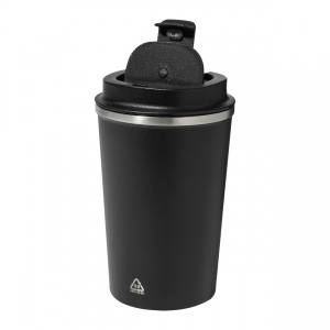 Artikel-Nr: AND808227-10Doppelwandiger, Isolierbecher aus recyceltem Edelstahl mit PP-Kunststoffaußenseite und Trinkdeckel. Mit RPET-Griffschlaufe. Füllmenge: 350 ml.