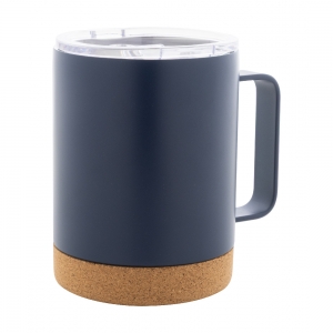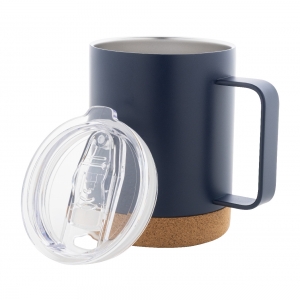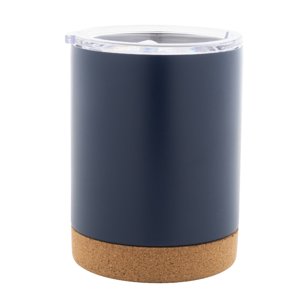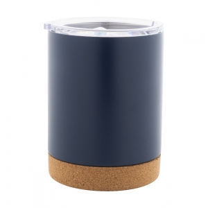 Artikel-Nr: AND722803-06ADoppelwandiger Thermobecher aus Edelstahl mit Trinkdeckel und Fuß aus natürlichem Kork, einzeln in Kraftpapierbox. Füllmenge: 330 ml.