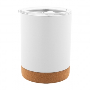 Artikel-Nr: AND722803-01Doppelwandiger Thermobecher aus Edelstahl mit Trinkdeckel und Fuß aus natürlichem Kork, einzeln in Kraftpapierbox. Füllmenge: 330 ml.