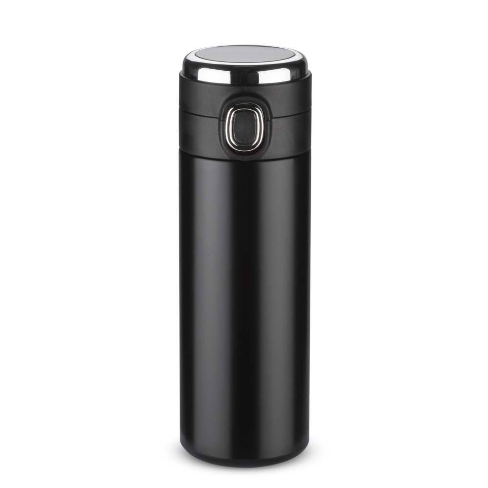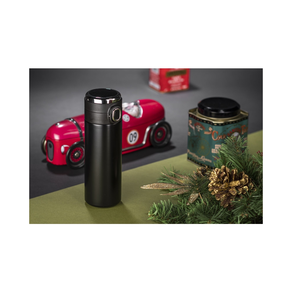 Artikel-Nr: ARD16016-02Der FOKS Thermobecher ist sowohl für lange Reisen als auch für den täglichen Gebrauch perfekt geeignet. Es verfügt über eine Vakuumisolierung, wodurch die Temperatur des Getränks bis zu 13 Stunden lang gehalten wird. Es hat auch ein äußerst praktisches Gadget: ein digitales Touch-Thermometer, das in die Kappe integriert ist. Drehen Sie die Tasse einfach für etwa 10 Sekunden auf den Kopf. und berühren Sie die Kappe, um die Temperatur des Getränks abzulesen. Das Innere des Bechers ist aus hochwertigem Edelstahl gefertigt. Ein Verschlussschloss verhindert ein versehentliches Öffnen des Deckels.