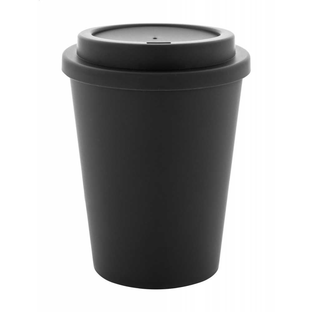 Artikel-Nr: AND800588-10Doppelwandiger, isolierter Thermobecher aus PP-Kunststoff mit Trinkdeckel. Füllmenge: 300 ml.