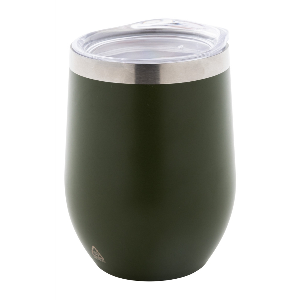 Artikel-Nr: AND800550-07Doppelwandiger Thermobecher aus recyceltem Edelstahl mit Trinkdeckel aus Kunststoff. Füllmenge: 350 ml.