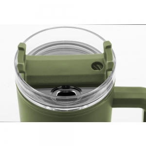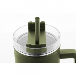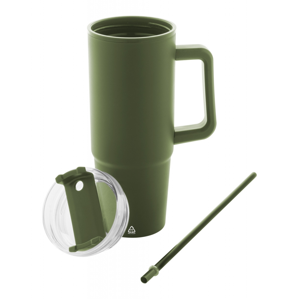 Artikel-Nr: AND808148-07Doppelwandiger Isolier-Thermobecher aus recyceltem PP Kunststoff mit Trinkdeckel und Trinkhalm aus Kunststoff. Füllmenge: 900 ml.