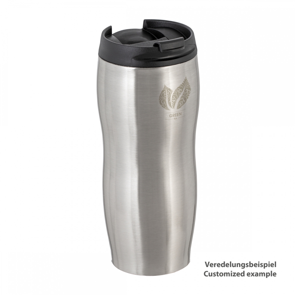 Artikel-Nr: RFS52534Der klassische und hochwertige Thermobecher aus Edelstahl eignet sich perfekt für Tee- und KaffeetrinkerInnen, die auf herkömmliche Papp- und Kunststoff-to-Go-Becher verzichten möchten. Der doppelwandige Thermobecher mit Kupfer-Vakuum-Isolierung hat einen auslaufgeschützten, BPA-freien Flip-Deckel und liegt durch seine leicht geschwungene Form gut in der Hand. Die Anti-Fingerprint-Beschichtung verhindert unschöne Fingerabdrücke auf dem glänzenden Edelstahl. Veredelbar mit Tampondruck oder Lasergravur. Zur Reinigung können Sie Becher und Deckel in die Spülmaschine geben, wir empfehlen jedoch eine Reinigung von Hand.
