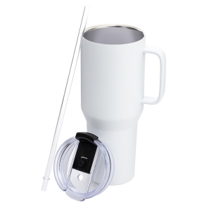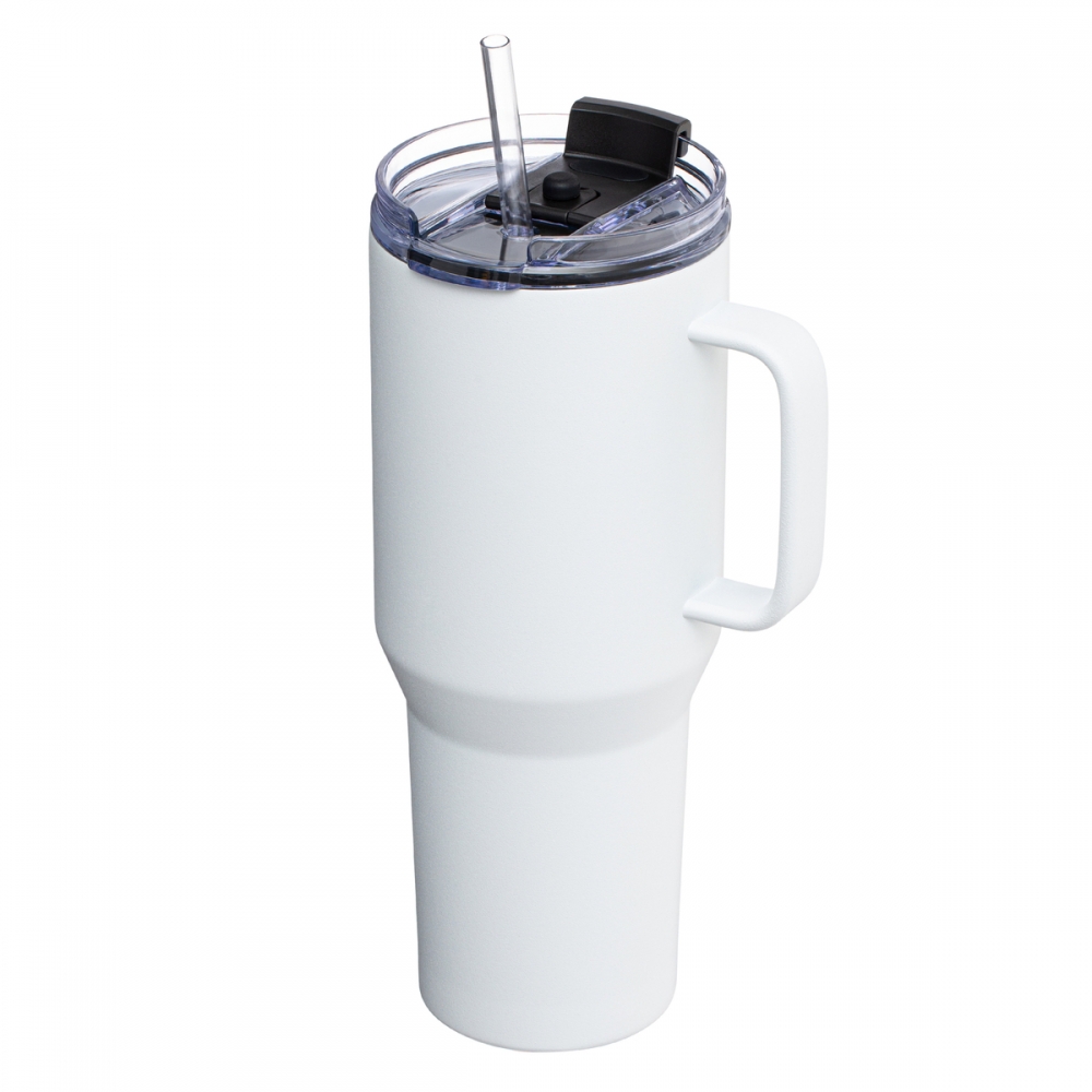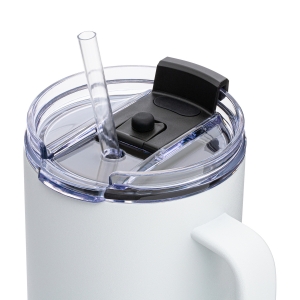 Artikel-Nr: RFS52652-WEEntdecken Sie den Thermobecher RETUMBLER-Grand Canyon! Mit einem beeindruckenden Fassungsvermögen von 1200 ml ist er der ideale Begleiter für lange Durststrecken. Der pulverbeschichtete Thermobecher wird aus recyceltem Edelstahl, recyceltem AS- und PP-Kunststoff hergestellt. Dank der doppelwandigen Kupfer-Vakuumisolierung bleibt das Getränk bis zu 32 Stunden kalt oder 9 Stunden warm. Für sommerliche Erfrischungen ist der Becher besonders geeignet. Lieber eiskalt? Dank der großzügigen Öffnung lassen sich Eiswürfel mühelos einfüllen, die durch die hervorragende Isolierung des Bechers bis zu 48 Stunden gefroren bleiben. Der auslaufhemmende, multifunktionale Steckdeckel verfügt sowohl über eine verschließbare Trinkhalm-Öffnung als auch eine Flip-Lid-Öffnung. So können Sie den Becher nicht nur zu Hause oder im Büro, sondern auch unterwegs bequem verwenden. Tipp: Der beiliegende Tritan-Strohhalm verfügt über einen nützlichen Stopper am unteren Ende, der ein Herausgleiten verhindert. Auf diese Weise bleibt der Strohhalm auch bei kohlensäurehaltigen Getränken sicher an seinem Platz. RETUMBER-Grand Canyon stellt eine prominente Logo-Fläche rundum auf dem Becherkorpus zur Verfügung. Die Werbeanbringung kann mittels Tampondruck, UV-Druck oder Lasergravur erfolgen. Tipp: Alle Komponenten dieses Bechers können bedenkenlos in der Spülmaschine gereinigt werden.