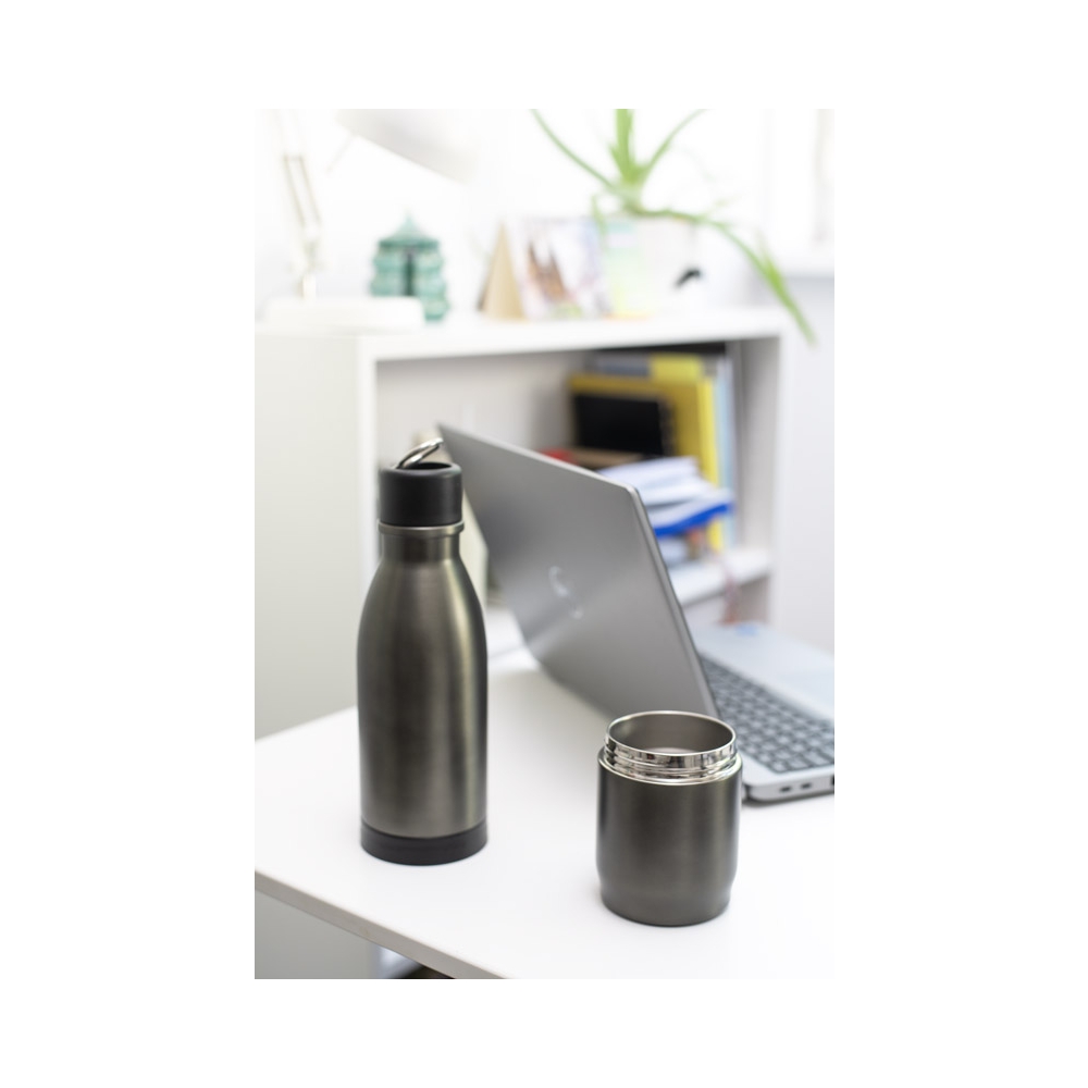 Artikel-Nr: ARD16054-15DRINNO Thermoflasche aus rostfreiem Stahl mit einem Fassungsvermögen von 500 ml. Sie besteht aus zwei Elementen (Kammern), die getrennt und unabhängig voneinander verwendet werden können: der obere Teil ist eine Thermoflasche mit einem Deckel, der mit einem Klappgriff ausgestattet ist, und der untere Teil ist ein Twist-off-Thermobecher mit Schnappdeckel. Das Ganze ergibt eine funktionelle Lösung für heiße und kalte Getränke - ideal für die Arbeit, auf Reisen oder als praktisches Werbegeschenk.