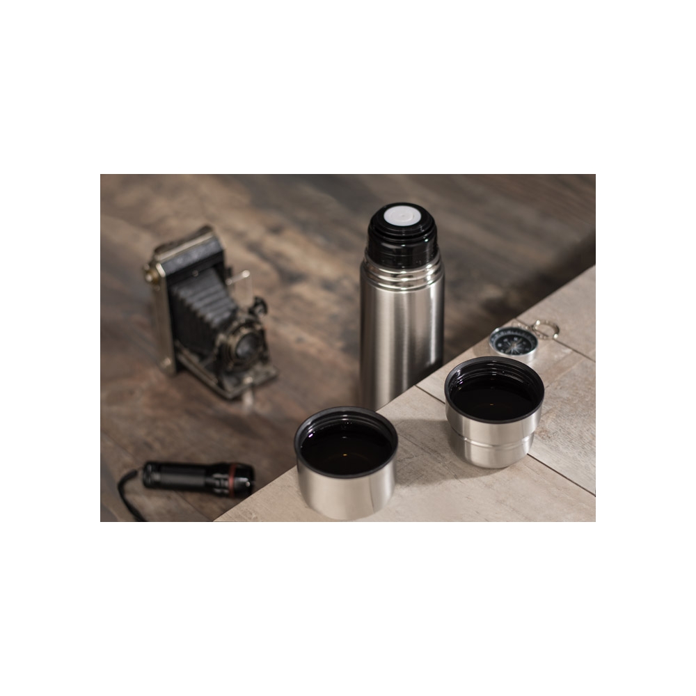 Artikel-Nr: ARD17608Eine große Thermosflasche mit zwei Trinkbecher perfekt für Herbst&Wintertouren. Beide Trinkbecher sind auf der Oberseite der Thermosflasche gelegt. Thermosflasche aus Edelstahl mit einer Doppelwand. Das Logo wird eingraviert.