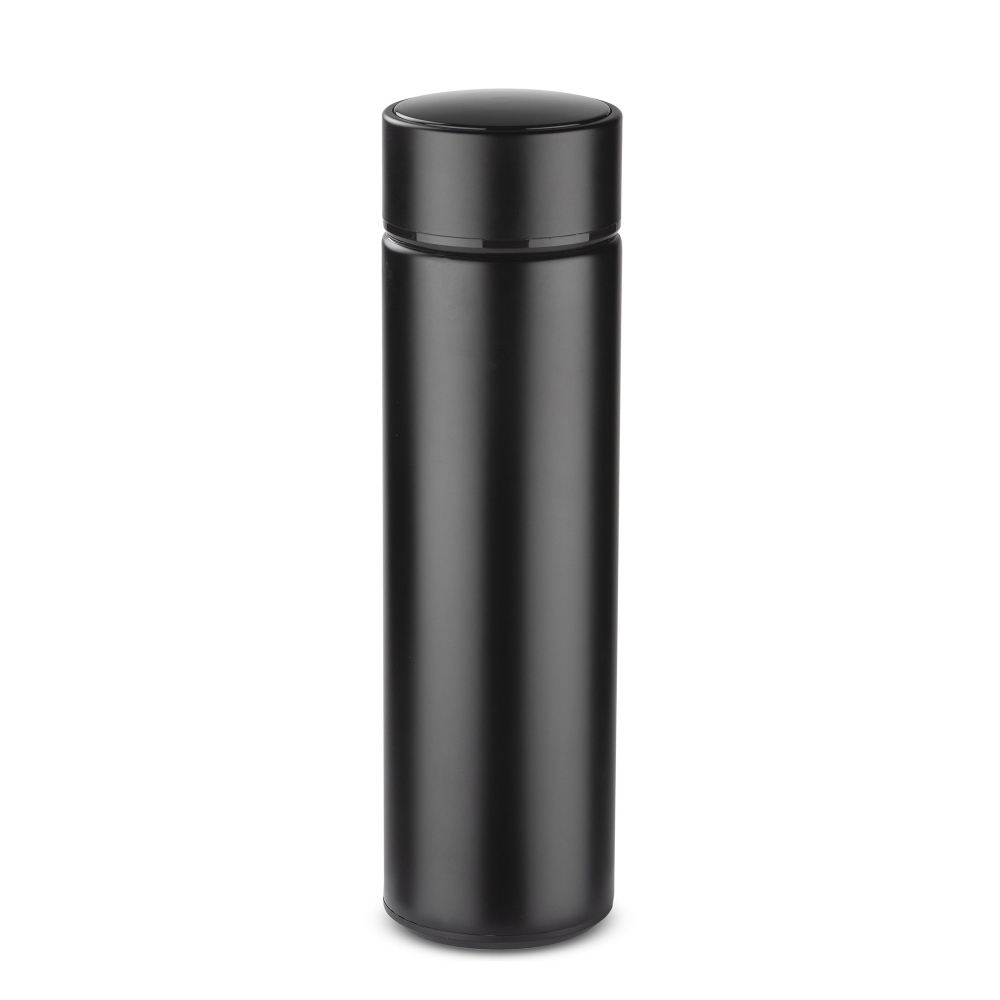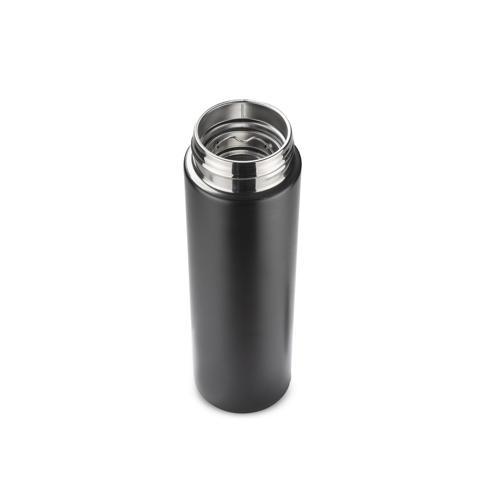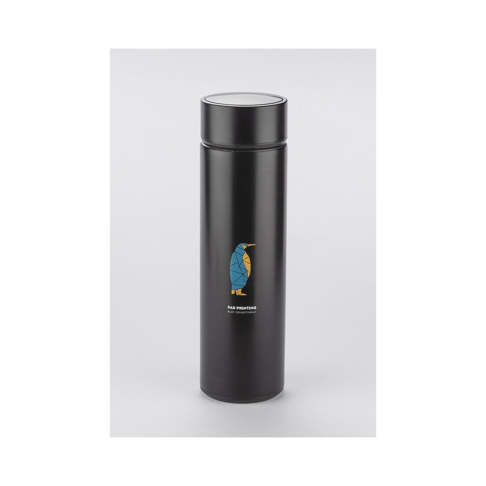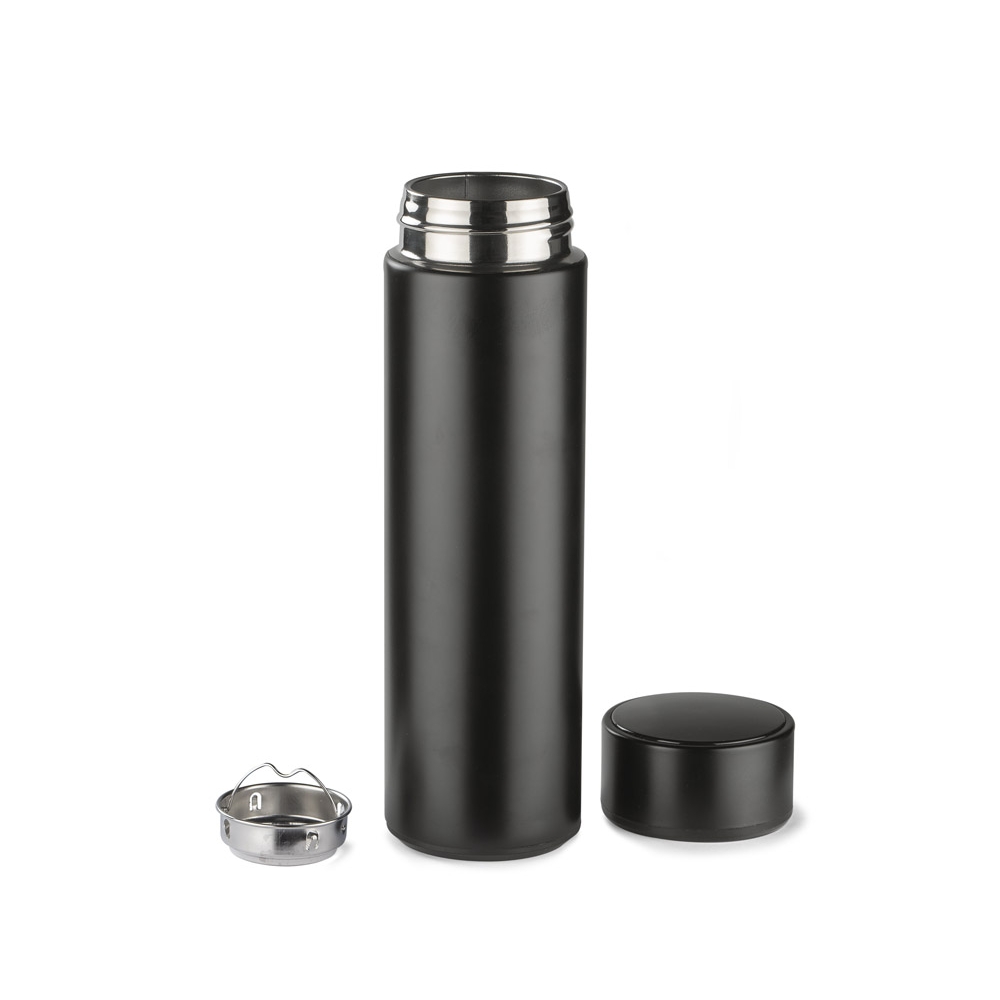 Artikel-Nr: ARD16014-02Die Thermoflasche THERMO ist ein sehr interessantes Gadget. Es kombiniert die klassische Funktion einer Thermoskanne und Elektronik in Form eines in die Kappe eingebauten Digitalthermometer. Drehen Sie die Flasche einfach 10 Sekunden lang um, um die Temperatur des Getränks abzulesen. Zusätzlich wird ein Tropfensymbol angezeigt, dessen Farbe sich je nach Temperatur ändert: rot, wenn das Getränk heiß ist, gelb, wenn es trinkbar ist, und grün, wenn es kalt ist. Dank des Vakuums zwischen den Wänden hält es die Temperatur etwa 13 Stunden lang. Hergestellt aus Edelstahl 304. Im Inneren befindet sich ein Sieb, dank dem wir Tee brauen können.