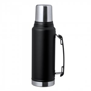 Artikel-Nr: KTO20730002000Thermoskanne aus Edelstahl mit einem Fassungsvermögen von 1L. Kombination aus schwarzer Farbe und poliertem Stahl, elegantes Finish und Schraubdeckel mit Tumbler-Funktion und 200ml Fassungsvermögen. Griff an der Seite zum einfachen Tragen und in einer Kraft-Design-Box präsentiert.