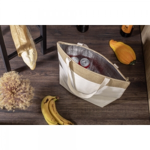 Artikel-Nr: ARD20810-17Die Baumwolltasche JUTO mit einem Gewicht von 340 g / m² ist ein äußerst praktisches Werbegeschenk. Die langen Tragegriffe der Tasche sorgen für bequemen Tragekomfort auf der Schulter, und der breite Boden ermöglicht das einfache Packen größerer Gegenstände. Das Jutefinish der JUTO-Tasche verleiht ihr einen natürlichen Charakter und hebt sie von anderen Modellen ab. Der größte Vorteil der Tasche ist die thermische Isolierungsschicht, die die Temperatur der transportierten Produkte effektiv aufrechterhält, was sie ideal für Einkäufe, Picknicks oder den Strand macht. Die große Oberfläche eignet sich hervorragend für eine effektive Markenwerbung.