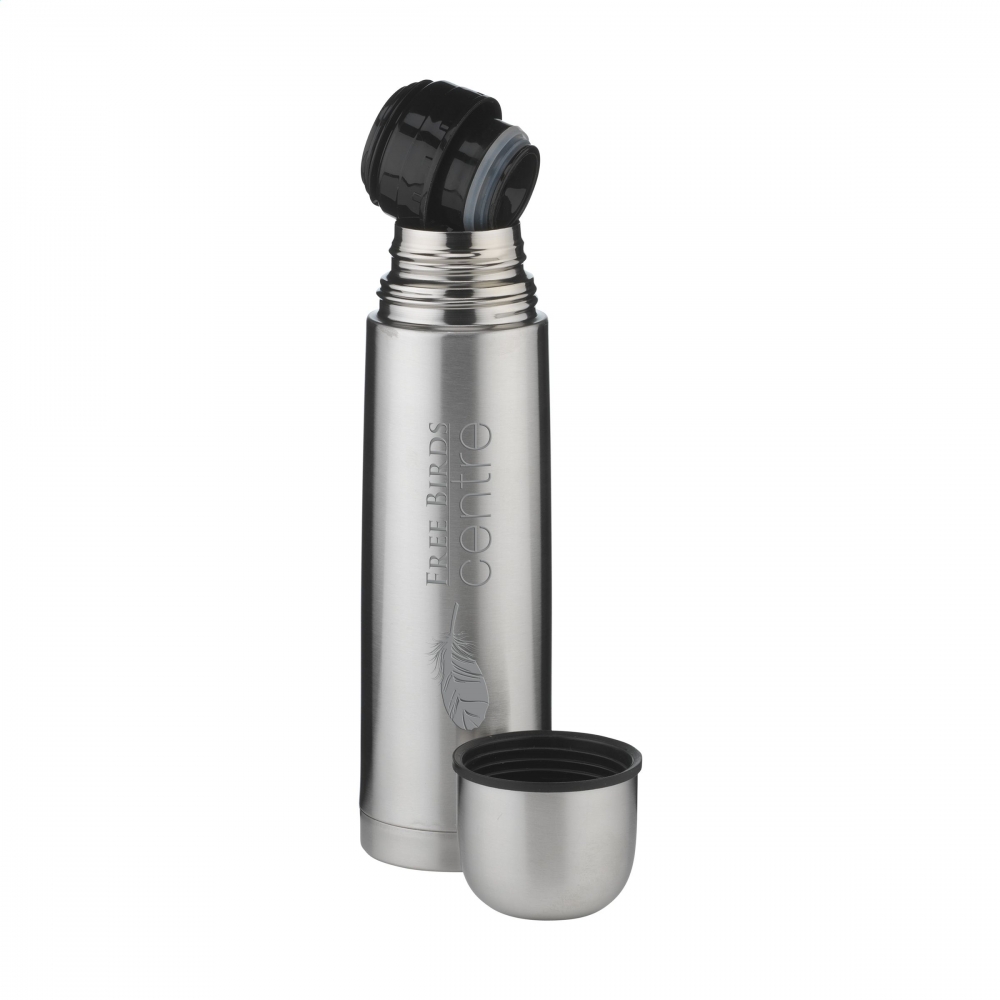 Artikel-Nr: CLP724301Doppelwandige, vakuumisolierte, rostfreie Edelstahl-Thermoflasche. Unzerbrechlich und unverwüstlich. Der Vakuumraum zwischen den Wänden isoliert den Inhalt und hält Getränke lange Zeit warm oder kalt. Mit Schraubdeckel / Trinkbecher und handlichem Schanksystem mit Druckverschluss. Tropfsicher. Nicht spülmaschinengeeignet. Fassungsvermögen 500 ml. Wird einzeln in einem Kraftkarton geliefert.