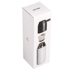 Artikel-Nr: RFS52232-WEDie trendige Isolierflasche mit aufgeschraubtem Kunststofftrinkbecher und Silikonschlaufe hat einen praktischen Kippschalter zum Öffnen und Schließen der Flasche. Doppelwandig und vakuumisoliert. Füllmenge: 350 ml