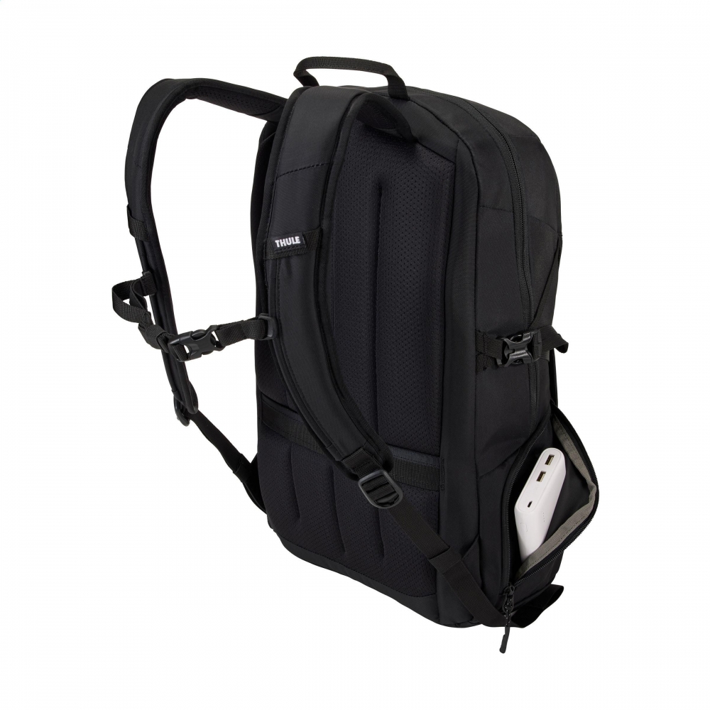 Artikel-Nr: CLP262467-001Schlanker und stilvoller Rucksack aus robustem bluesign®-zertifiziertem 400D-Nylon der Marke Thule. Mit 2 Kompartimenten bietet er viel Stauraum und Taschen, um all Ihre Sachen zu organisieren. Mit schützenden Fächern für einen Laptop bis zu 15,6 Zoll und ein Tablet bis zu 10,5 Zoll. Innenfächer zur Aufbewahrung von Kleinteilen und Stiften. Zusätzliche Reißverschlusstasche auf der Vorderseite und eine elastische Netztasche an der Seite für die Mitnahme einer Trinkflasche. Mit verschiedenen Extras und einem Gepäckriemen für den Transport auf einem Trolley. Die verstellbaren Schulterriemen und das Rückenteil mit Luftstromkanal sind mit Schaumstoff und atmungsaktivem Netzgewebe ausgestattet und garantieren einen hervorragenden Tragekomfort. Ausgestattet mit verstellbarem Brustgurt, YKK-Reißverschlüssen und völlig gefüttert. Entwickelt für Arbeit und Freizeit. Fassungsvermögen ca. 21 Liter.