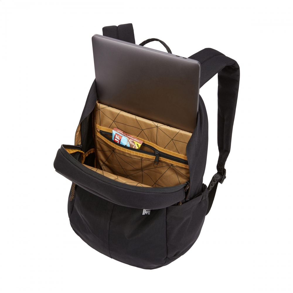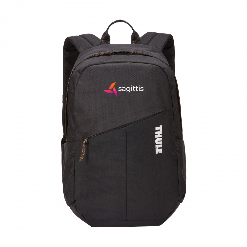 Artikel-Nr: CLP262889-001Professioneller Laptop-Rucksack mit bluesign®-Gütesiegel der Marke Thule. Der Rucksack besteht aus 100% recyceltem 600D-Polyester und ist mit 400D-Nylon gefüttert. Das großzügige Fach bietet viel Stauraum und verfügt über eine Reißverschlusstasche und ein gepolstertes Schutzfach für einen Laptop bis 14 Zoll (16 Zoll MacBook® Pro). Mit zwei Seitentaschen und einer Reißverschlusstasche auf der Vorderseite für schnellen Zugriff auf persönliche Gegenstände. Komplett gefüttert und mit YKK-Reißverschlüssen und einer Trageschlaufe ausgestattet. Die verstellbaren Schultergurte und das Rückenteil sind mit Schaumstoff ausgestattet und garantieren einen hervorragenden Tragekomfort. Dieser Rucksack besteht aus bluesign®-zertifizierten Stoffen und Accessoires und wird ressourcenschonend produziert. Fassungsvermögen ca. 20 Liter.