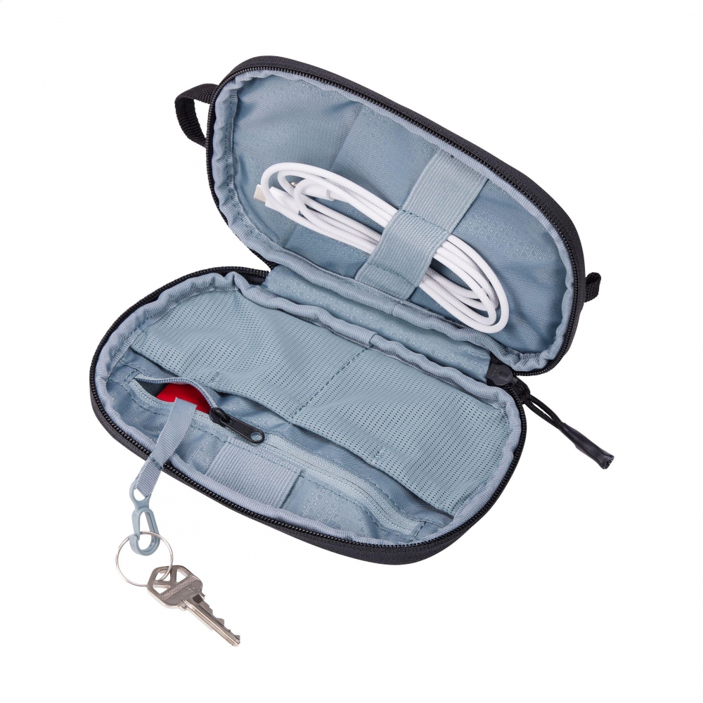 Artikel-Nr: CLP262856-001Kompaktes Etui aus Nylon / Polyester der Marke Thule. Ideal zum Aufbewahren und Transportieren von Kabeln, Ladegeräten und anderen kleinen Accessoires. Das Etui hat auch Platz für persönliche Gegenstände wie Reisepass, Führerschein oder Schlüssel. Es ist mit einem robusten Reißverschluss und verschiedenen Staufächern ausgestattet. Passt problemlos in eine Tasche oder einen Rucksack, perfekt für unterwegs.