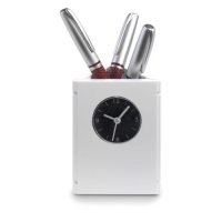 Artikel-Nr: 255V2294-03Tischuhr mit Bilderrahmen (7,5 x 4,5 cm), Stifteköcher, Alarmfunktion, klappbar, inklusive Batterien