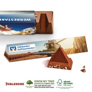 Artikel-Nr: CDL91545Beliebter Klassiker im XL-Format! TOBLERONE ist ein Klassiker für Kenner. In ihrer unverkennbaren Dreiecksform lässt die kultige Schokolade Genießerherzen höher schlagen. Mit viel Platz für Ihre Werbung: Denn mit einer Kantenlänge von jeweils 6 cm und einer Länge von 30,5 cm ist diese Schokolade wirklich groß!