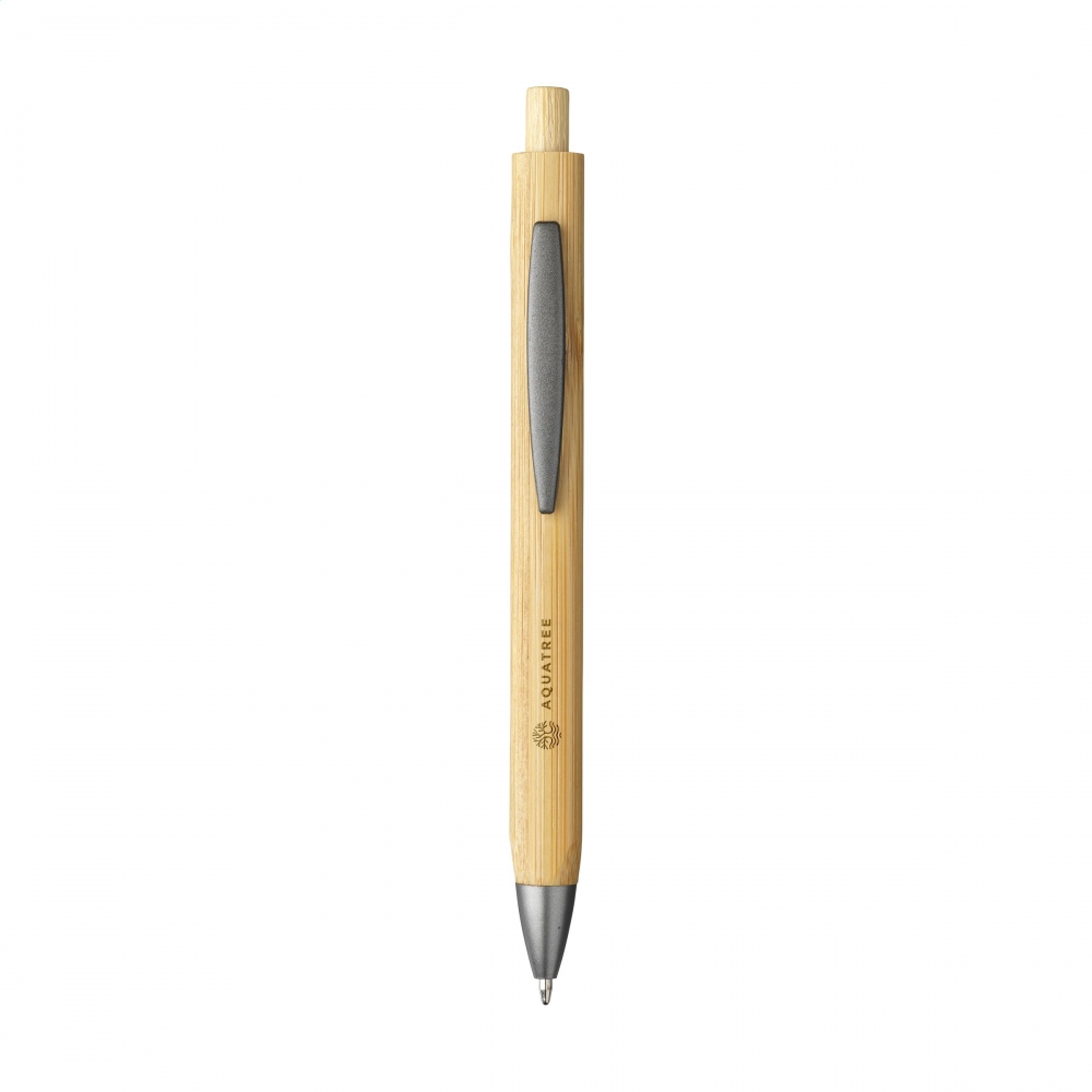 Artikel-Nr: CLP10204420WoW! Blauschreibender Kugelschreiber mit wunderschönem Halter aus FSC 100% zertifiziertem Bambus. Durch die dreieckige Form liegt der Stift sehr angenehm in der Hand. Wunderschön verarbeitet mit Druckknopf aus Bambus und Metallclip.