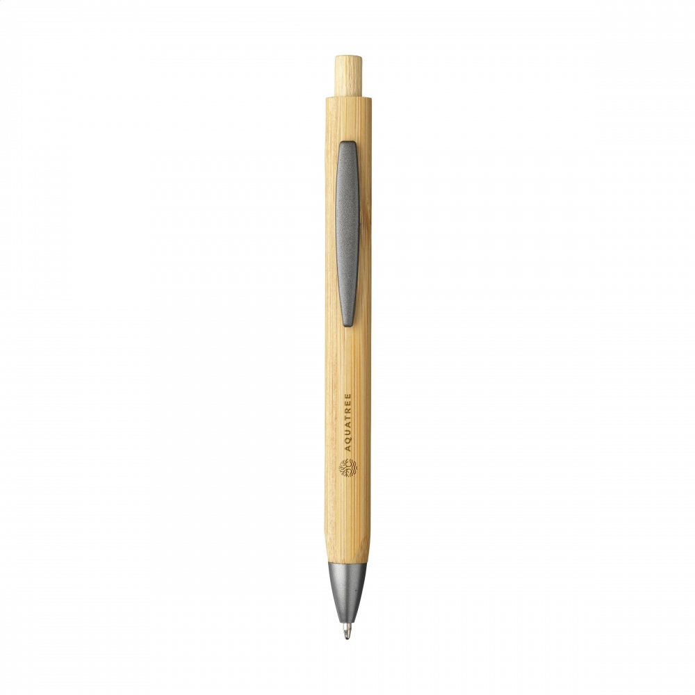 Artikel-Nr: CLP261020-011128Blauschreibender Kugelschreiber mit wunderschönem Halter aus FSC 100% zertifiziertem Bambus. Durch die dreieckige Form liegt der Stift sehr angenehm in der Hand. Wunderschön verarbeitet mit Druckknopf aus Bambus und Metallclip.