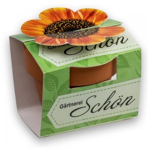 Artikel-Nr: HOP12.10030.00-somDas Tontöpfchen aus Terracotta wird mit unterschiedlichen Samen nach Wahl sowie einer Substrattablette als Erde geliefert. Die Banderole mit Steckverschluss in Form einer Blume macht das Produkt einzigartig und sympathisch. Die Werbebotschaft erfolgt durch die im Digitaldruck individuell bedruckte Banderole und optional durch einen einfarbigen Tampondruck auf dem Töpfchen.