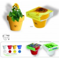 Artikel-Nr: 449013351Farbenfreudig wie die Natur ist dieses lackierte Tontöpfchen. Wählen Sie Ihre Farbe aus: weiss, gelb, blau, rot. Die Samensorten, abgestimmt auf Ihre Werbebotschaft, sind ebenfalls wählbar. Eingelegt in dem Tontopf Colour sind Samen, Erdtablette und Pflanzanleitung für die Anzucht der Pflanze. Die Kartonagen-Abdeckung bietet Platz für den Werbeaufdruck oder aber eine eigene Gestaltung, jeweils ab 250 Stück. Dafür erhalten Sie die Vorlage von uns gestellt. Eine weitere Bedruckung ist als Tampondruck direkt auf dem farbigen Topf möglich. Dieser transportiert sichtbar während der Wachstumsphase Ihre Botschaft. Bringen Sie Farbe in Ihr Unternehmen mit diesem sympathischen Töpfchen.