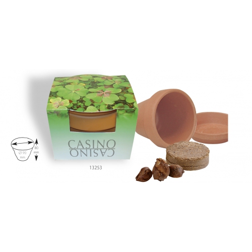 Artikel-Nr: 449013253Der Ton-Topf mit dem Untersetzer beinhaltet Erdtabletten und Samen für die Anzucht der Pflanzen. Platz für Ihren Werbedruck ist im Standardmotiv oben und auf der Vorderseite der Banderole oder eine eigene Gestaltung der Banderole, jeweils bereits ab 250 Stück.