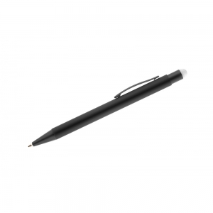Artikel-Nr: ARD19656-00NIRO ist ein Kugelschreiber mit einem einzigartigen Effekt seiner Markierung. Die Gravurfarbe ähnelt dem Touch-Tipp für Touchscreens. Der Stiftkörper besteht aus Aluminium und ist mit einer gummierten Soft-Touch-Beschichtung versehen. Zierteile in schwarz. Automatischer Kugelschreiber Ersatzmine Typ G2 in blau.