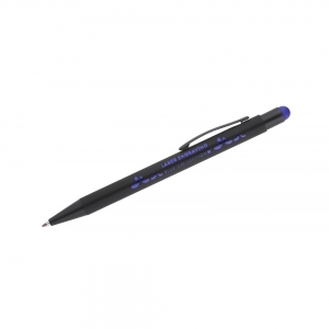 Artikel-Nr: ARD19656-03NIRO ist ein Kugelschreiber mit einem einzigartigen Effekt seiner Markierung. Die Gravurfarbe ähnelt dem Touch-Tipp für Touchscreens. Der Stiftkörper besteht aus Aluminium und ist mit einer gummierten Soft-Touch-Beschichtung versehen. Zierteile in schwarz. Automatischer Kugelschreiber Ersatzmine Typ G2 in blau.