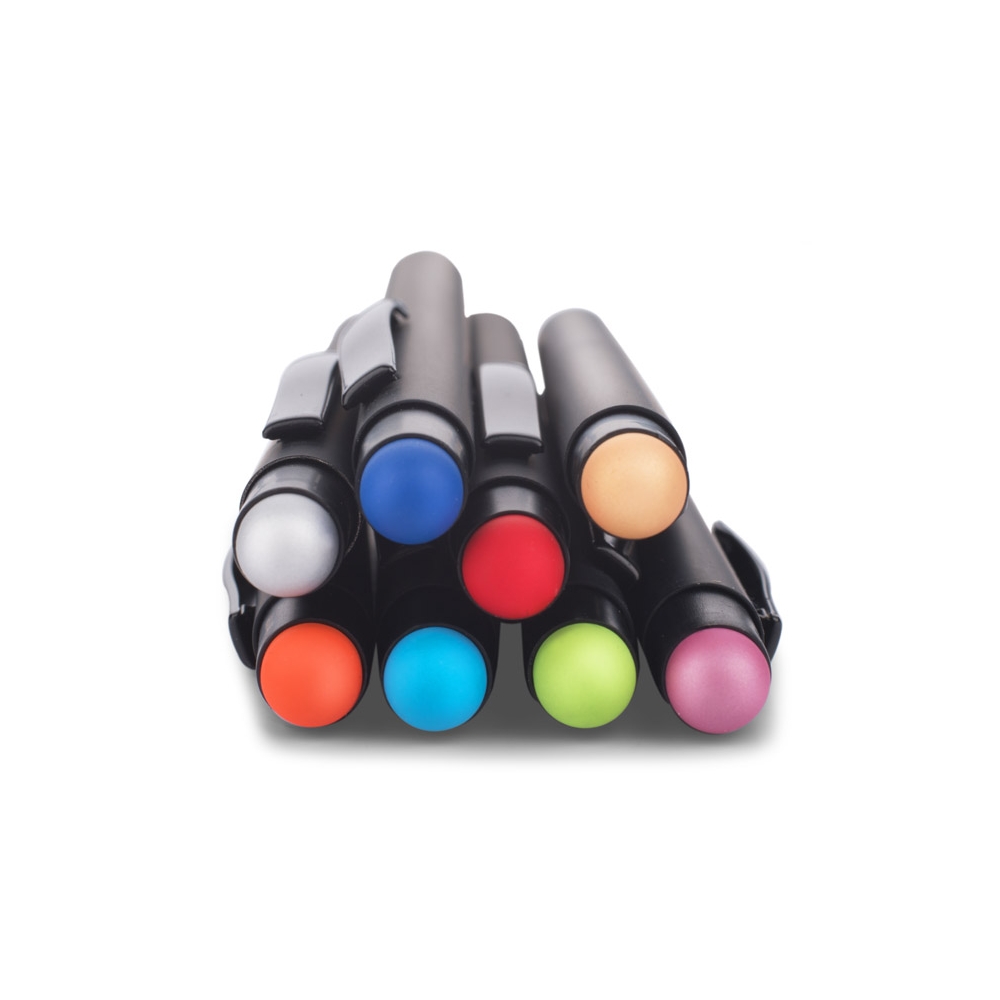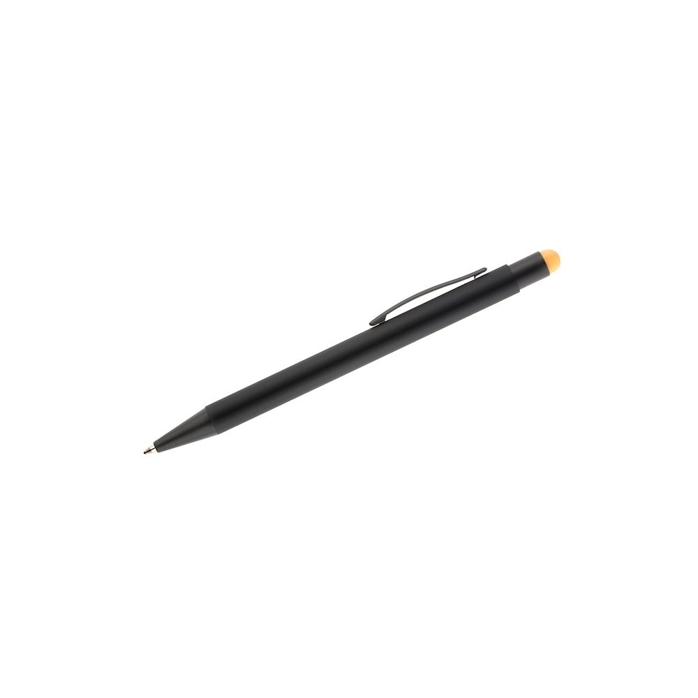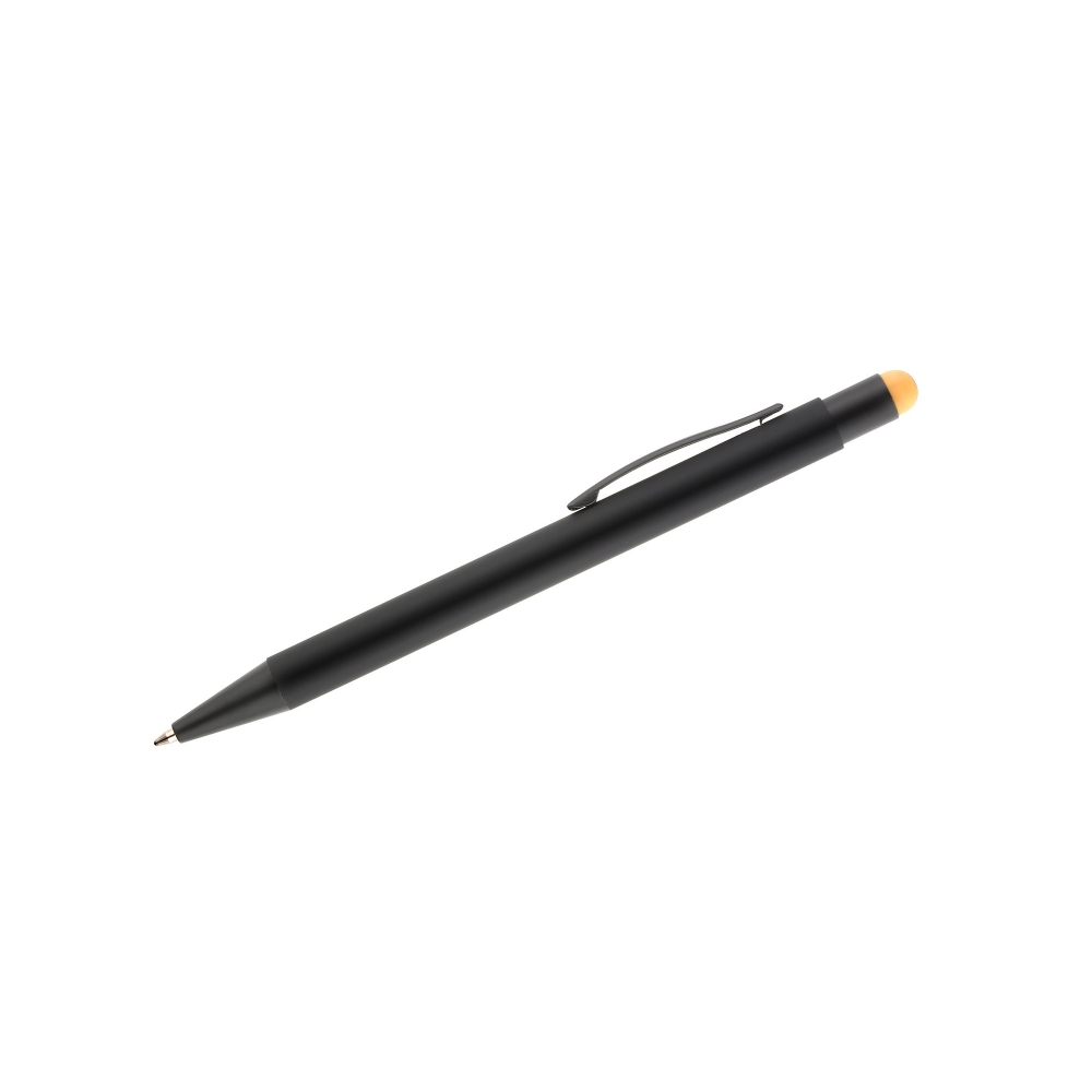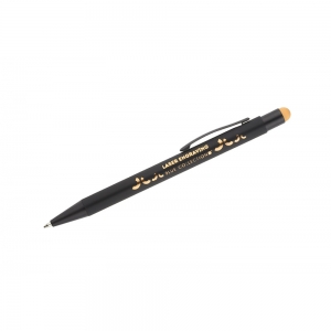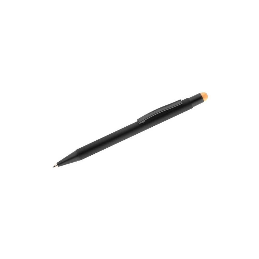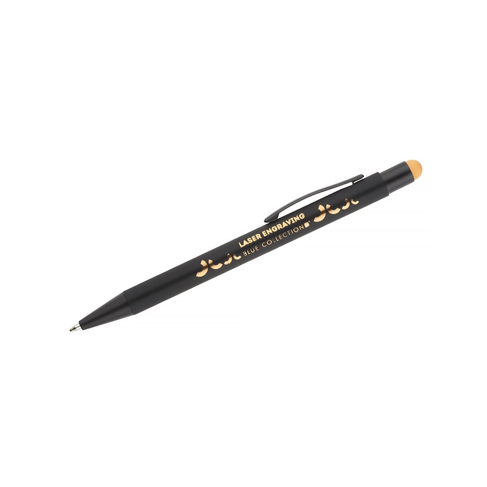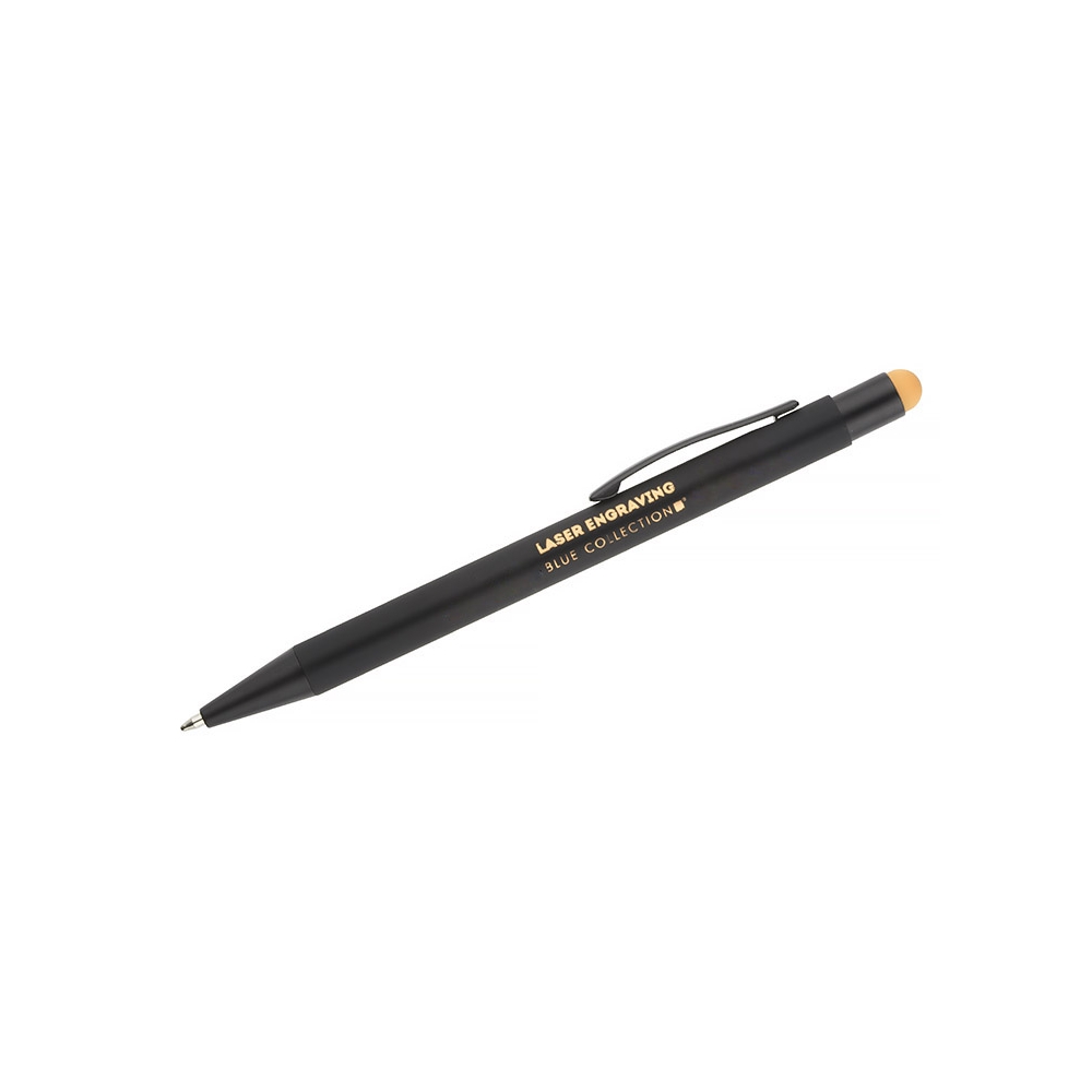 Artikel-Nr: ARD19656-24NIRO ist ein Kugelschreiber mit einem einzigartigen Effekt seiner Markierung. Die Gravurfarbe ähnelt dem Touch-Tipp für Touchscreens. Der Stiftkörper besteht aus Aluminium und ist mit einer gummierten Soft-Touch-Beschichtung versehen. Zierteile in schwarz. Automatischer Kugelschreiber Ersatzmine Typ G2 in blau.