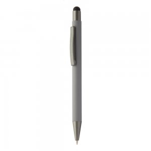Artikel-Nr: AND808198-80Kugelschreiber mit Touchpen aus recyceltem Aluminium mit Softtouch Oberfläche und Teilen in Gunmetal-Optik. Blauschreibend.