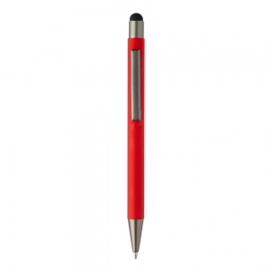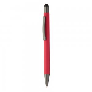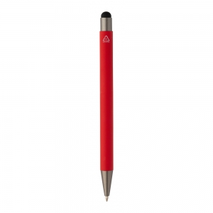Artikel-Nr: AND808198-05Kugelschreiber mit Touchpen aus recyceltem Aluminium mit Softtouch Oberfläche und Teilen in Gunmetal-Optik. Blauschreibend.