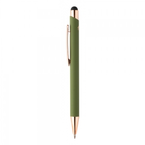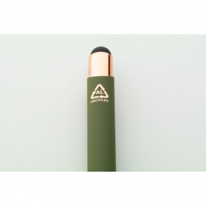 Artikel-Nr: AND808108-07Kugelschreiber mit Touchpen aus recyceltem Aluminium mit gummierter Oberfläche und roségoldenen Elementen. Mit Spezialbeschichtung für Spiegelgravur in Roségold, blauschreibend.
