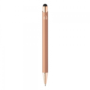Artikel-Nr: AND808108-97Kugelschreiber aus recyceltem Aluminium mit gummierter Oberfläche und roségoldenen Elementen. Mit Spezialbeschichtung für Spiegelgravur in Roségold, blauschreibend.